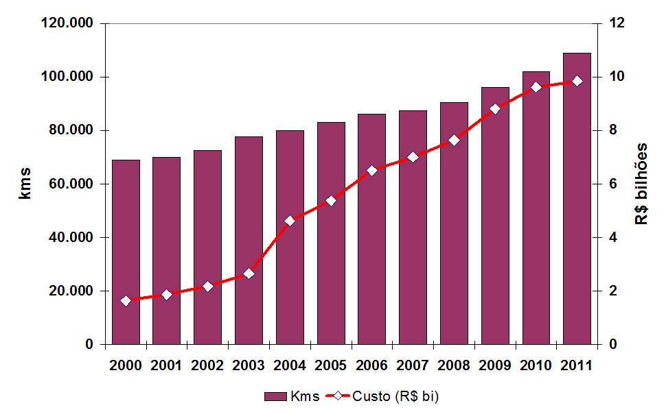 - Aumento do custo de transmissão. (R$/km – +100%). Apesar das declarações entusiasmadas de deságios, os custos de transmissão só aumentaram no período.