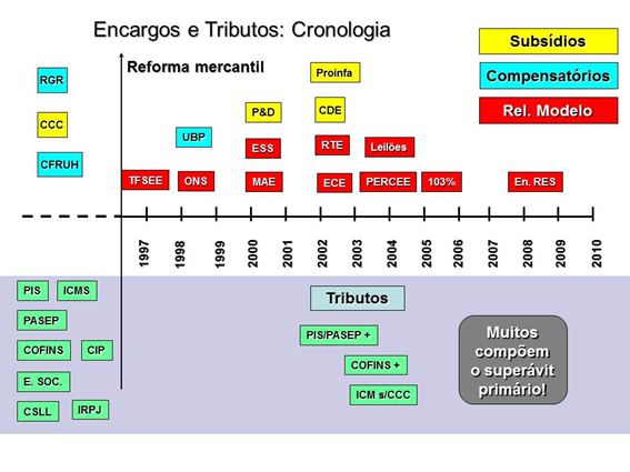 - Proliferação de encargos, a maioria ironicamente criada após a reforma mercantil do setor. Alguns são subsídios, mas outros são típicos da modelagem adotada.