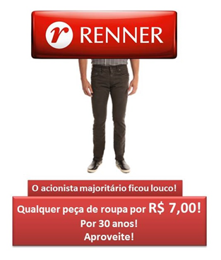 Atenção: Sabemos que os acionistas das Lojas Renner não são irresponsáveis. O anúncio foi feito apenas como ilustração.