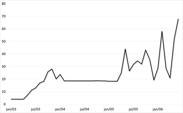 Como se pode ver, até 2007 o preço permaneceu abaixo de R$ 20/MWh.