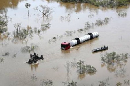 Comentário: A confusão das usinas do Rio Madeira aponta uma série de erros de planejamento. Em primeiro lugar, essas usinas foram imaginadas dentro de um plano estratégico bi-nacional com a Bolívia. Elas fariam parte de um sistema de integração fluvial com o Amazonas, de todo interesse da Bolívia. A construção de uma usina a montante, já em território Boliviano poderia ajudar a regularização do rio, que mostra que cheias podem ocorrer prejudicando os estados de Acre e Rondônia e também paralisando o funcionamento das turbinas de Santo Antônio, que, sendo do tipo bulbo, não operam a partir de certo nível de cheia.