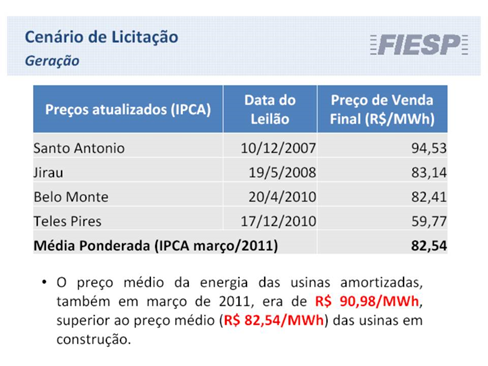 Como se pode deduzir, a intenção era mostrar que usinas novas (e incompletas) tinham preço mais baixo do que o das estatais.