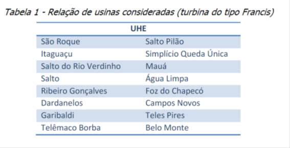 Caso das turbinas do tipo Francis. A maioria das usinas atingidas têm esse tipo de turbina.