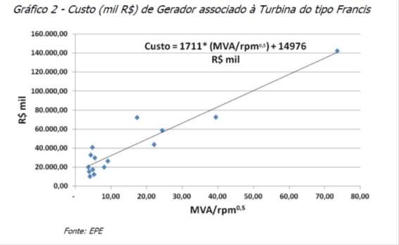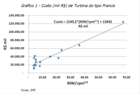 Com base nessa pequena amostra, a metodologia define o custo da turbina e gerador a partir das curvas abaixo.