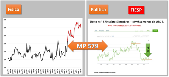 Principalmente dois motivos fizeram com que o governo, pressionado pela campanha da FIESP, adotasse um caminho não ortodoxo: Em primeiro lugar, em 2011 já estava evidente que o Brasil já ocupava a terceira posição dentre os países com energia cara, muito longe do padrão hidroelétrico de Noruega e Canadá, conjuntura ocupada em 1995. A FIESP, omitindo o detalhe de que nem toda a indústria tem custos elevados com energia elétrica, argumentava ser a alta tarifa a razão da perda de produtividade. Isso é verdade para alguns setores eletrointensivos, mas não pode ser generalizado para a indústria como um todo. Até porque, fosse real, as indústrias italiana e japonesa estariam falidas, pois pagam ainda mais caro do que a brasileira.