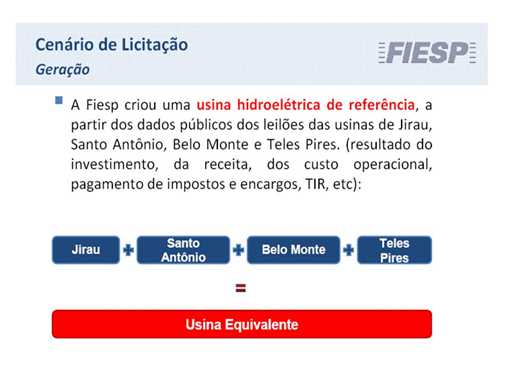 As duas figuras abaixo são slides da apresentação da própria FIESP que mostram qual foi a estratégia usada para lançar a ideia de que algo poderia ser feito para reduzir a tarifa sem ter que enfrentar as questões levantadas no item anterior.