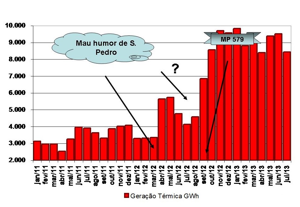 Até hoje não há nenhuma explicação sobre a incrível coincidência do anúncio da MP 579 em 2012 com a radical mudança no despacho térmico, como pode ser visto no gráfico abaixo.