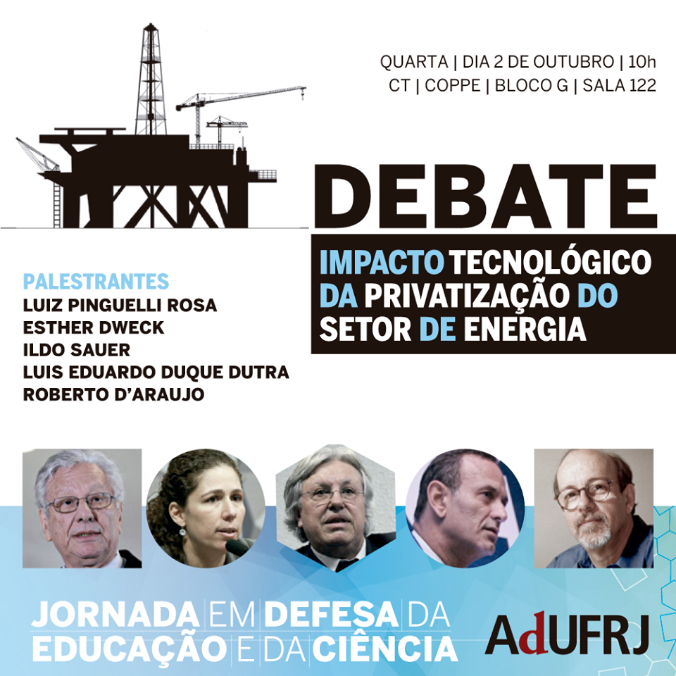 Assista ao debate “Impacto Tecnológico da Privatização do Setor de Energia”, com a participação do Instituto Ilumina, ao vivo na TV ADUFRJ, dia 02/10 às 10:00 horas, clicando aqui ou no link: https://www.youtube.com/user/adufrj