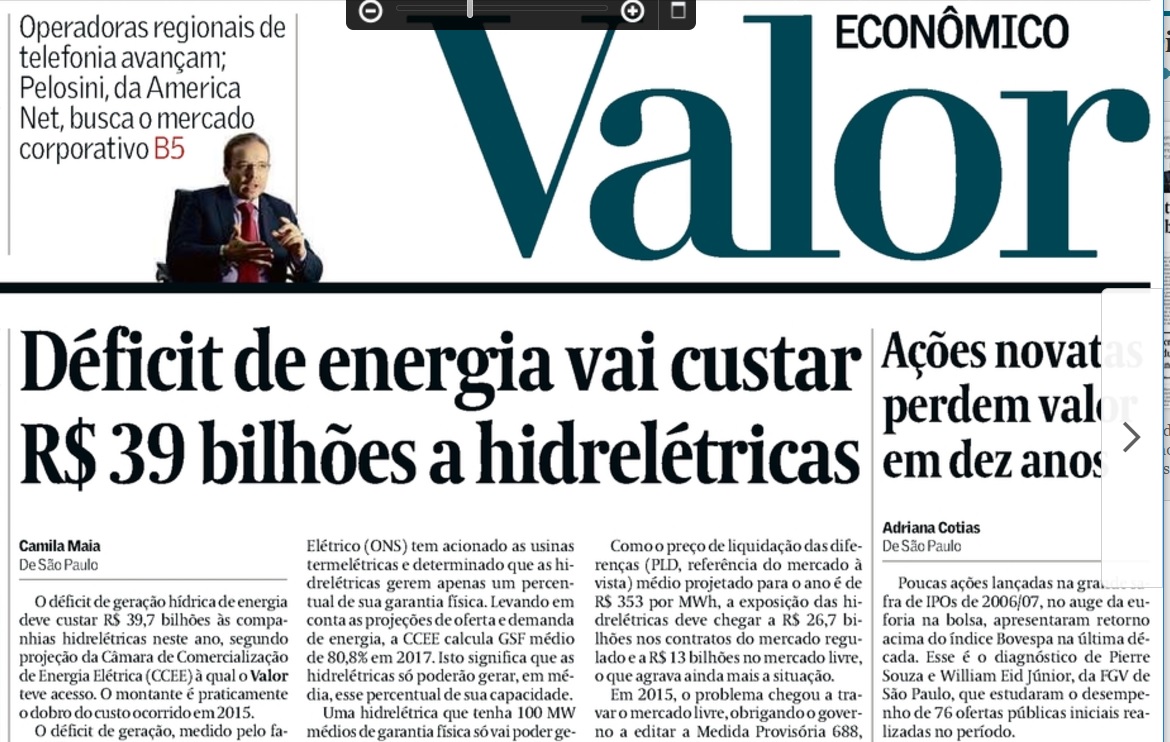 Déficit de energia vai custar R$ 39 bilhões a hidrelétricas – Valor