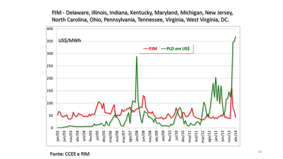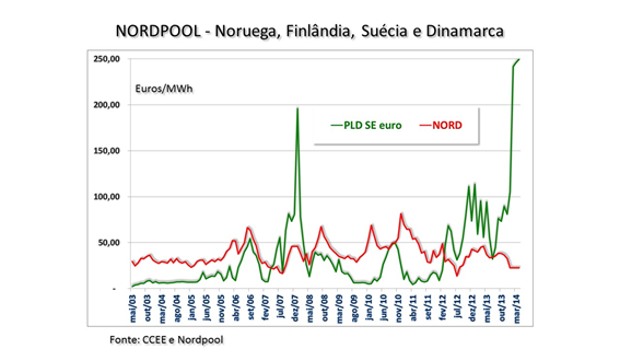 - Há algum mercado de energia no planeta que apresente um preço tão baixo? Vejam abaixo uma comparação feita com cotações históricas do Real em relação ao dólar e euro. O histórico do mercado brasileiro está na curva verde.