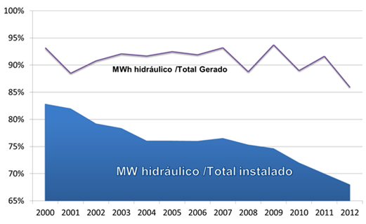 Acontece que tal imprevisibilidade faz com que o sistema seja vulnerável às mudanças climáticas, pois nem sempre é possível estar preparado para condições hidrológicas muito desfavoráveis. Na verdade, para estar preparado para qualquer condição adversa, seria necessário um sobreinvestimento de uma magnitude tal que tornaria a tarifa de energia elétrica extremamente cara. Com base nesta constatação, o Conselho Nacional de Política Energética – CNPE definiu na Resolucão no 1, de 18 de novembro de 2004 o critério de garantia de suprimento no planejamento da expansão, operação e garantia física um risco máximo de 5% de insuficiência de oferta de energia elétrica. Isto significa que, por motivos econômicos, de todos os cenários hidrológicos simulados para a operação do sistema, é aceitável que em 5% deles não haja energia suficiente para atender à demanda, considerando toda a capacidade de geração, inclusive termelétrica.