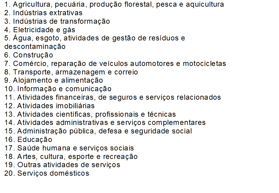 Para 2011, o IBGE divulgou as contas nacionais com níveis de agregação diferentes. Neste trabalho, optou-se pela matriz que apresenta vinte produtos, a saber: