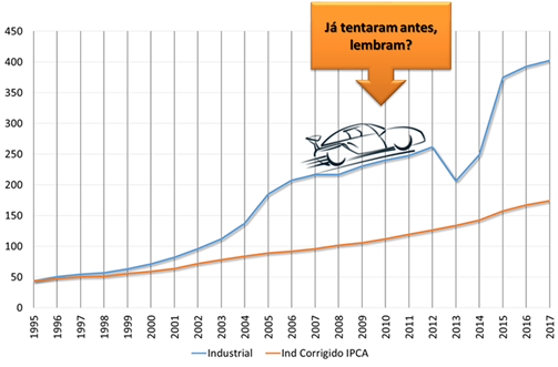 O Brasil realmente não aprende. Ao invés de fazer um diagnóstico sério para explicar porque hoje pagamos o dobro do que pagávamos em 1995, fica tentando artificialidades que já não funcionaram. O que foi a intervenção do governo Dilma senão um “jeitinho” para enganar os bobocas?