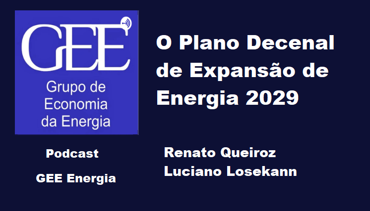 Neste podcast do Grupo de Economia da Energia do Instituto de Economia da UFRJ, Renato Queiroz e Luciano Losekann conversam sobre o Plano Nacional de Expansão de Energia 2029 (PDE 2029).