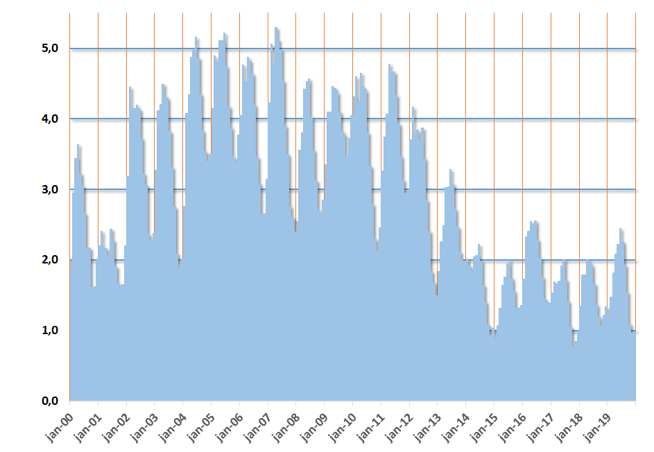 Reserva só tem atingido o equivalente a 1 mês e meio de carga