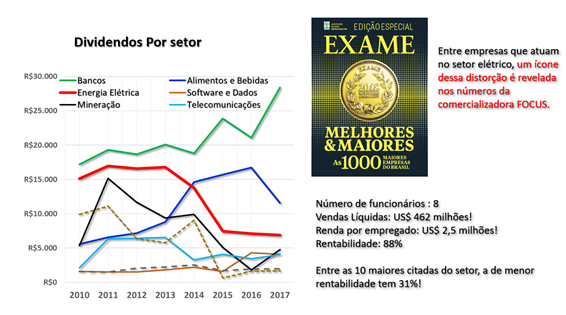 Além disso, como já mostramos aqui, até 2015, o setor elétrico brasileiro só foi superado pelo setor bancário como líder em lucratividade.