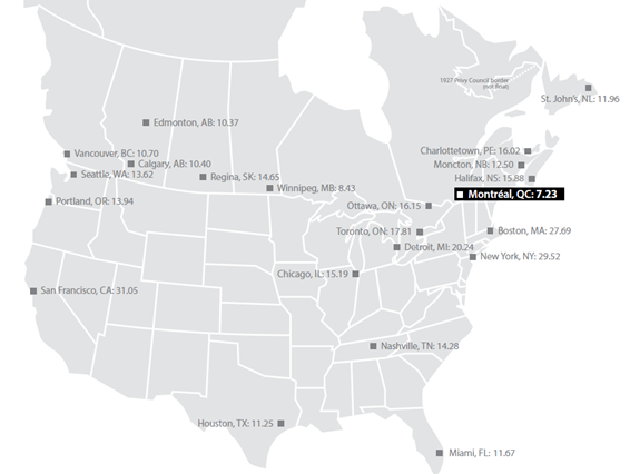 Comentário do ILUMINA: A tarifa da Light sem o aumento é de R$ 732/MWh. Isso significa aproximadamente US$ 228/MWh, ou US$ 22,8 centavos/kWh. No mapa abaixo, a tarifa das maiores cidades norte americanas (impostos inclusos).