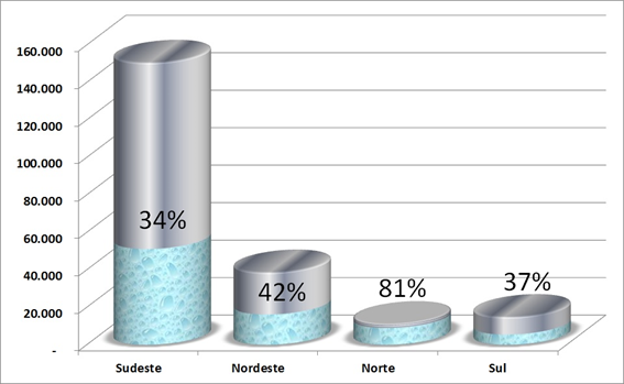 Comentário: Muitas vezes vemos que as reportagens representam a situação dos reservatórios das regiões com cilindros do mesmo tamanho e mostrando apenas o percentual da reserva de cada região. A representação correta é a do gráfico abaixo porque coloca os tamanhos dos cilindros com altura proporcional a capacidade máxima de cada um dos sistemas. Assim, fica bem mais evidente a gravidade da situação. Só não vê quem não quer ver.