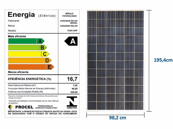 • E esta é uma placa fotovoltaica de pouco menos de 2 metros quadrados. Segundo o PROCEL essa placa de 2 m2 produz 40 kWh/mês, ou 20 kWh/m2/mês ou ainda 240 kWh/ano/m2.